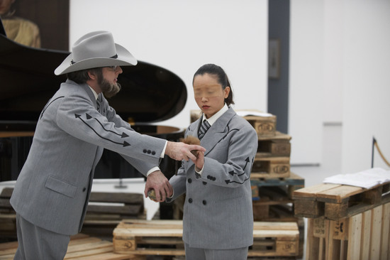 Für das Gastspiel in Bern kommt die Stuttgarter Aufführung in Form von Videoprojektionen wieder zu ihrem Ausgangspunkt zurück und wird im Berner Reenactment erneut zum Spielpartner.
